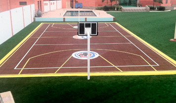 تصميم وإنشاء الملاعب والأرضيات المطاطية الداخلية والخارجية (ملاعب السلة، اليد، الطائرة ومضامير الجري)